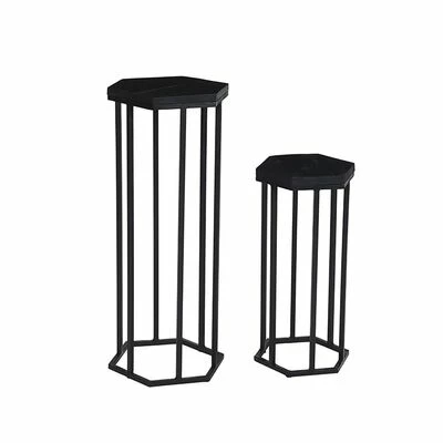 Cet ensemble de 2 supports de plantes Slide de la marque LABEL51 est un ensemble robuste de deux colonnes avec un design hexagonal ludique en bois de manguier brut et en métal. Vous pouvez également les utiliser comme tables d’appoint.
