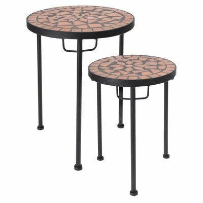 Cet ensemble de 2 tables d’appoint de la marque ProGarden avec dessus en mosaïque et un design Terra, est élégant et pratique, ce qui en fait un supplément parfait pour égayer votre espace !
