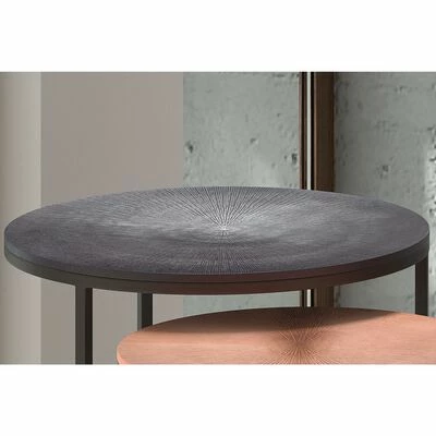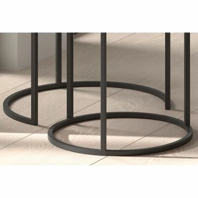 Les tables sont faites de métal avec des cadres tout noir et des dessus en deux couleurs : gris et cuivre. Ces tables gigognes permettent également d’économiser de l’espace lorsqu’elles ne sont pas utilisées.