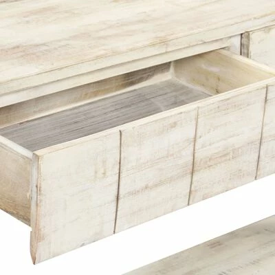Cette table est faite de bois de manguier solide qui a été appliqué une belle finition par polissage, peinture et laquage pour lui donner un aspect raffiné. Le savoir-faire exquis et les grains de bois raffinés rendent chaque meuble unique et légèrement différent l’un de l’autre. Dotée de 2 tiroirs et d’1 étagère, la table d’entrée offre un grand espace pour ranger vos effets personnels.