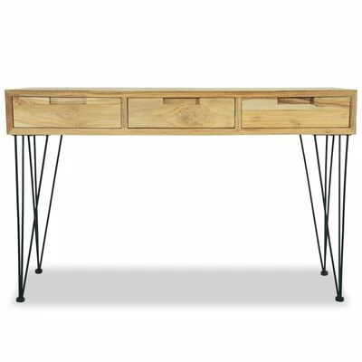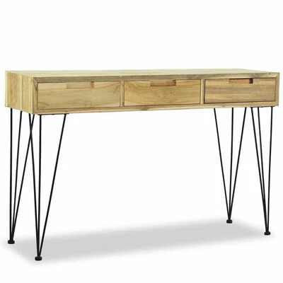 La table dispose d’un dessus de table en bois dur robuste, sur lequel vous pouvez placer des objets décoratifs comme des paniers de fruits ou des vases. Les 3 tiroirs offrent amplement d’espace pour garder toutes sortes de petits objets bien organisés et à portée de main. Cette table d’appoint robuste est soutenue par de solides pieds en fer forgé. L’assemblage est vraiment facile.