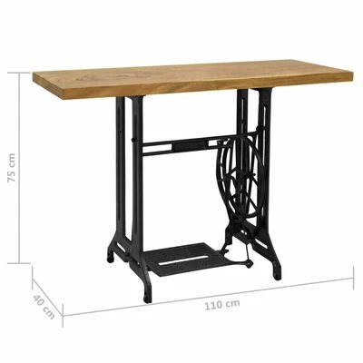 Ajoutez une touche de style vintage et rustique à votre intérieur de maison existant avec notre table console avec base de machine à coudre. Vous pouvez l’utiliser comme table console, table d’appoint, bureau ou table sous miroir, etc.