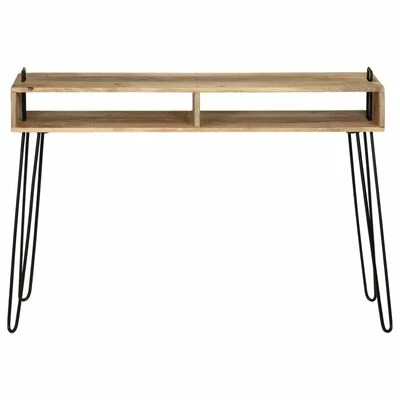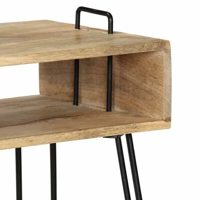 Fabriquée en bois de manguier massif et avec des cadres en acier robustes, la table est extrêmement stable et durable. Le dessus de table est idéal pour placer divers objets décoratifs comme des vases et des plantes en pot. Les étagères offrent un espace de rangement supplémentaire pour garder vos petits objets bien rangés. Les cadres en acier contribuent à la robustesse de la table et à son style industriel. Chaque étape du processus de fabrication est réalisée avec le plus grand soin, que ce soit le polissage ou le laquage. L’assemblage est facile.
