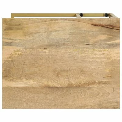 Ce bout de canapé est fabriqué en bois de manguier massif avec une finition naturelle à la chaux, ce qui le rend stable et sûr pour placer des boissons, des paniers de fruits ou des articles décoratifs. Le cadre en fer enduit de poudre laiton ajoute à sa construction solide. L’artisanat exquis et les grains de bois rendent chaque meuble distinctif et légèrement différent l’un de l’autre.