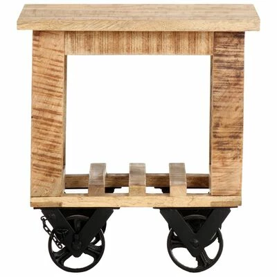 Cette table est faite à la main de bois de manguier massif brut qui est stable, durable et beau. Le savoir-faire artisanal ajoute à son style rétro spectaculaire. Chaque étape du processus est effectuée avec le plus grand soin, que ce soit le polissage ou le laquage. Le savoir-faire artisanal et les belles veines de bois rendent chaque meuble unique et légèrement différent l’un de l’autre. Elle dispose de 4 roulettes pour faciliter le mouvement. L’étagère inférieure vous permet de ranger les essentiels, comme les livres, magazines, etc.