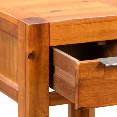 La table de chevet est en acacia massif, ce qui la rend robuste, stable et durable. Le bois massif a des beaux grains qui donnent à la table une touche de style naturel. Grâce à son design compact, cette table d’appoint ne prend pas beaucoup de place mais est très pratique. Elle dispose d’un tiroir et d’une étagère pour ranger les petits objets. Le dessus de table est idéal pour ranger un réveil ou des objets décoratifs comme des vases, des cadres photo ou des plantes en pot.