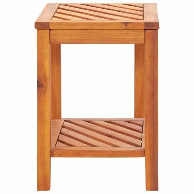 Fabriquée en bois d’acacia massif, la table est résistante aux intempéries et très durable. Le dessus robuste et l’étagère inférieure offrent suffisamment d’espace pour les boissons, les livres, les magazines ou les objets décoratifs. Le motif diagonal du dessus et de l’étagère confère à la table son aspect classique. L’assemblage est facile.