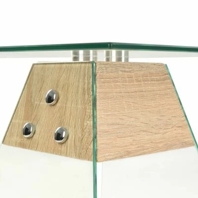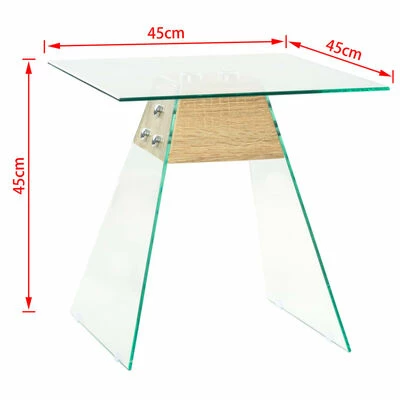 Les trois pièces de verre trempé sont fixées sur le MDF à l’aspect de chêne, ce qui rend la table d’appoint solide et stable. Le verre trempé est produit avec un traitement thermique ou chimique contrôlé, ce qui le rend plus durable et plus sûr que le verre normal. Placez des objets décoratifs sur cette table d’extrémité pour ajouter un élément de design intéressant à votre intérieur !