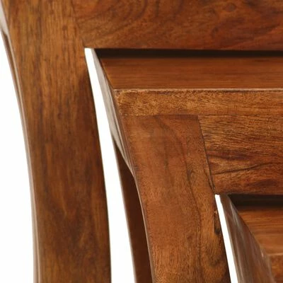 Cet ensemble de tables gigognes en bois d’acacia massif de 3 pièces, à l’aspect rustique et à la finition de Sesham, sera un supplément indémodable à votre maison. Elles peuvent également être utilisées comme tables basses, tables de chevet ou tables d’appoint.
